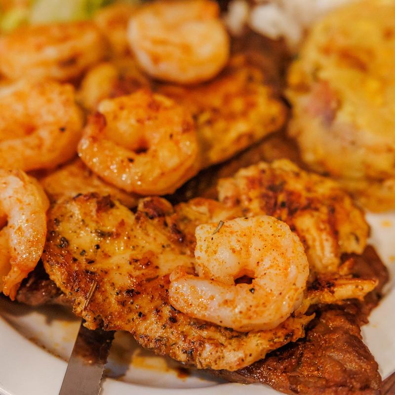 Grilled or fried. Served with grilled vegetables, mofongo, shrimp & salad