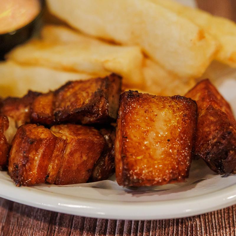 Chicken $14.49 | Fried Pork Belly $16.49 | Fried Chunks of Chicken-pork $16.49 • Fried cassava and choice of fried pork belly or fried chunks of chicken-pork or chicken